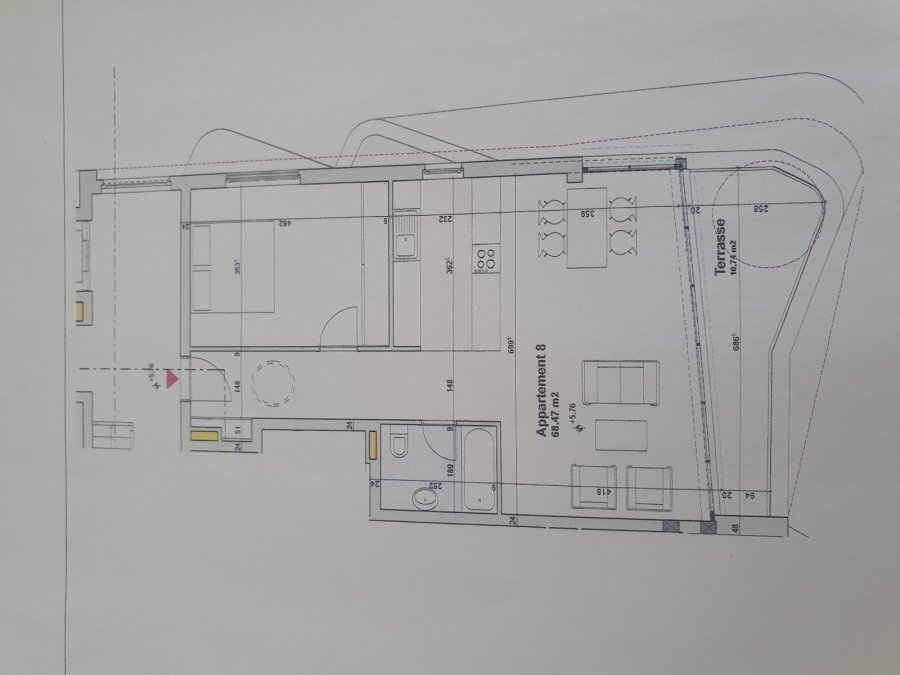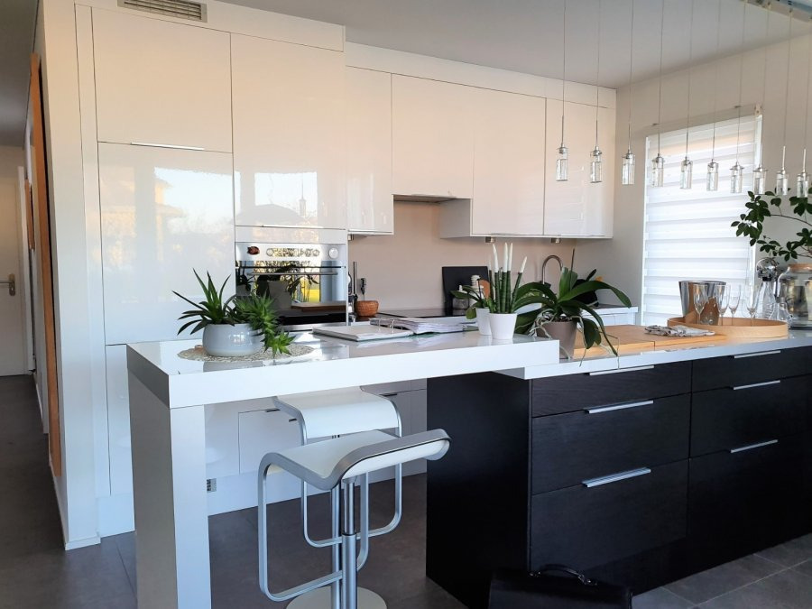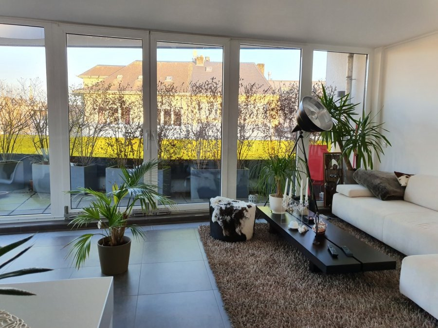 Situé rue des Aubépines à Merl, au 2ème étage d'un petit immeuble mixte datant de 2010, ce bel appartement meublé, d'une surface habitable de ± 68 m² pour une surface totale de ± 86 m², se compose comme suit :Le hall d'entrée ± 10 m² avec placard/vestiaire dessert la chambre ± 16 m² avec dressing intégré, la salle de bain ± 5 m² (baignoire, lavabo et wc), la cuisine aménagée et équipée ± 8 m² ouverte sur un lumineux séjour ± 27 m² avec baies vitrées s'ouvrant sur une terrasse ± 8 m².