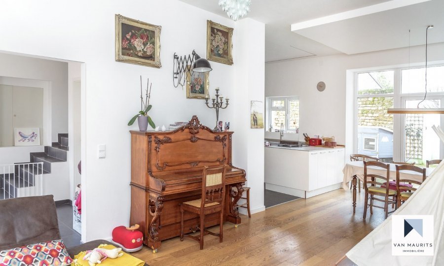 *** SOUS COMPROMIS *** SOUS COMPROMIS *** SOUS COMPROMIS *** Située à Mensdorf, cette ancienne maison, mitoyenne, en bon état général, présente une surface habitable d’environ 188m² incluant, sur 2 étages, une annexe d’environ 70m², qui peut être aménagée soit en studio, en garage, les possibilités sont nombreuses…La maison, construite en 1920, a régulièrement été rénovée et les derniers aménagements datent de 2016 et 2018 : panneaux photovoltaïques, pompe à chaleur, nouvelle cuisine équipée KicheChef, ouverte sur le séjour,…