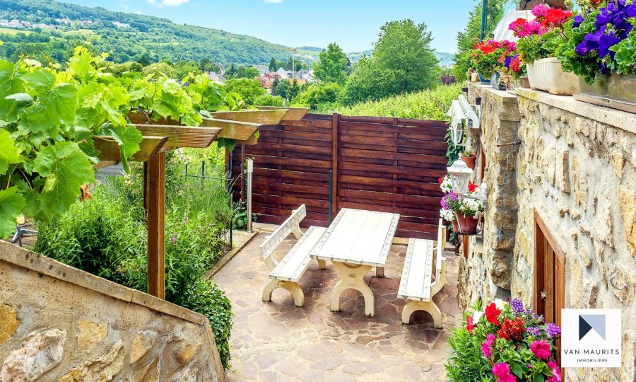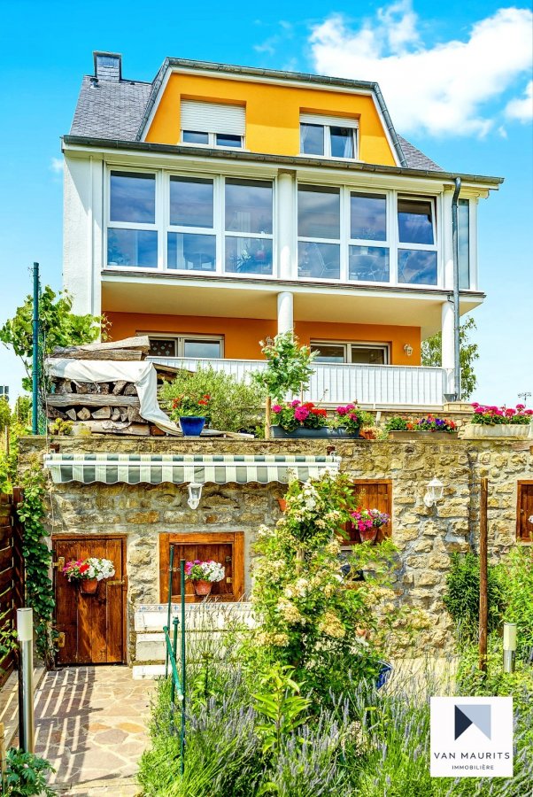 Située dans le village de Grevenmacher, près du stade avec vue imprenable sur la Moselle, cette maison datant de 1995 a connu plusieurs phases de rénovation, la plus importante ayant eu lieu en 2017. Elle se compose comme suit :Le rez-de-chaussée s'ouvre sur un hall ± 10 m² desservant un séjour ± 26 m², une cuisine équipée ± 13 m², un wc séparé ± 2 m². La cuisine et le séjour donnent accès à une véranda isolée ± 18 m² profitant d'une vue sur la Moselle et ses alentours. Un garage pour deux voitures ± 29 m² complète ce niveau.