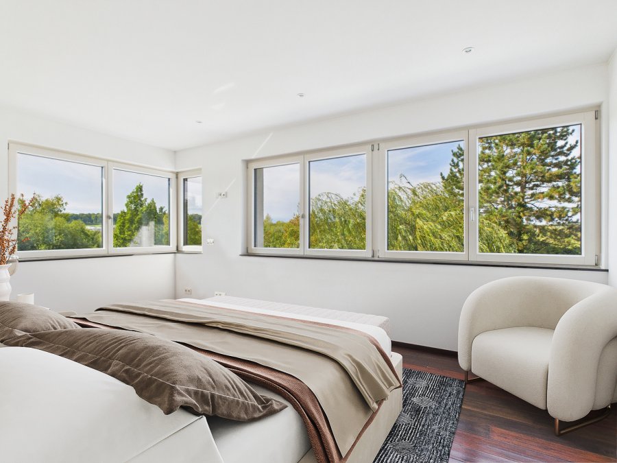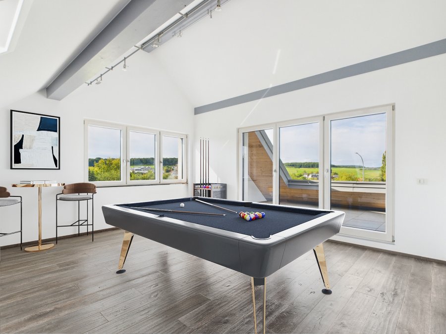 Sous les combles, vous trouverez un palier de 4 m², une quatrième chambre/bureau de 15 m², une vaste salle multifonctionnelle de 37 m² ainsi qu'un superbe loggia de 11 m² orienté Ouest.