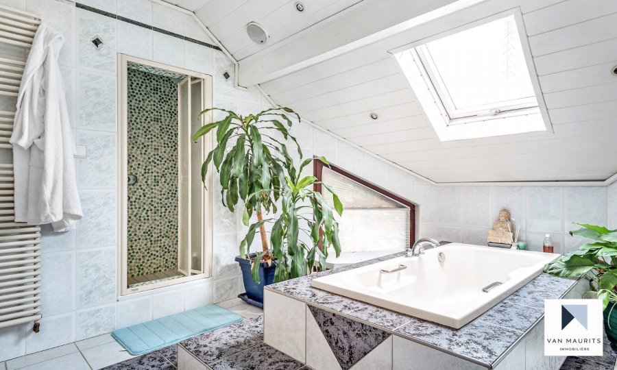 Au 1er étage : d’un palier de ± 12 m² qui dessert 4 chambres de ± 10, 16, 17 et 17 m² ; d’une salle de bain de ± 14 m² (baignoire, deux lavabos, douche, wc).