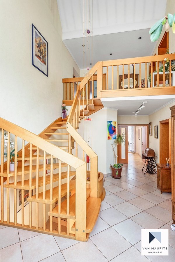 Au rez-de-chaussée : d’une entrée cathédrale de ± 18,5 m² qui conduit au salon/salle à manger de ± 50 m² (avec cheminée) s’ouvrant sur une terrasse de ± 20m² orientée à l’ouest ; d’une cuisine équipée de 20 m² avec un cellier de ± 3 m² ; d’une chambre de ± 11m² et d’un wc séparé.